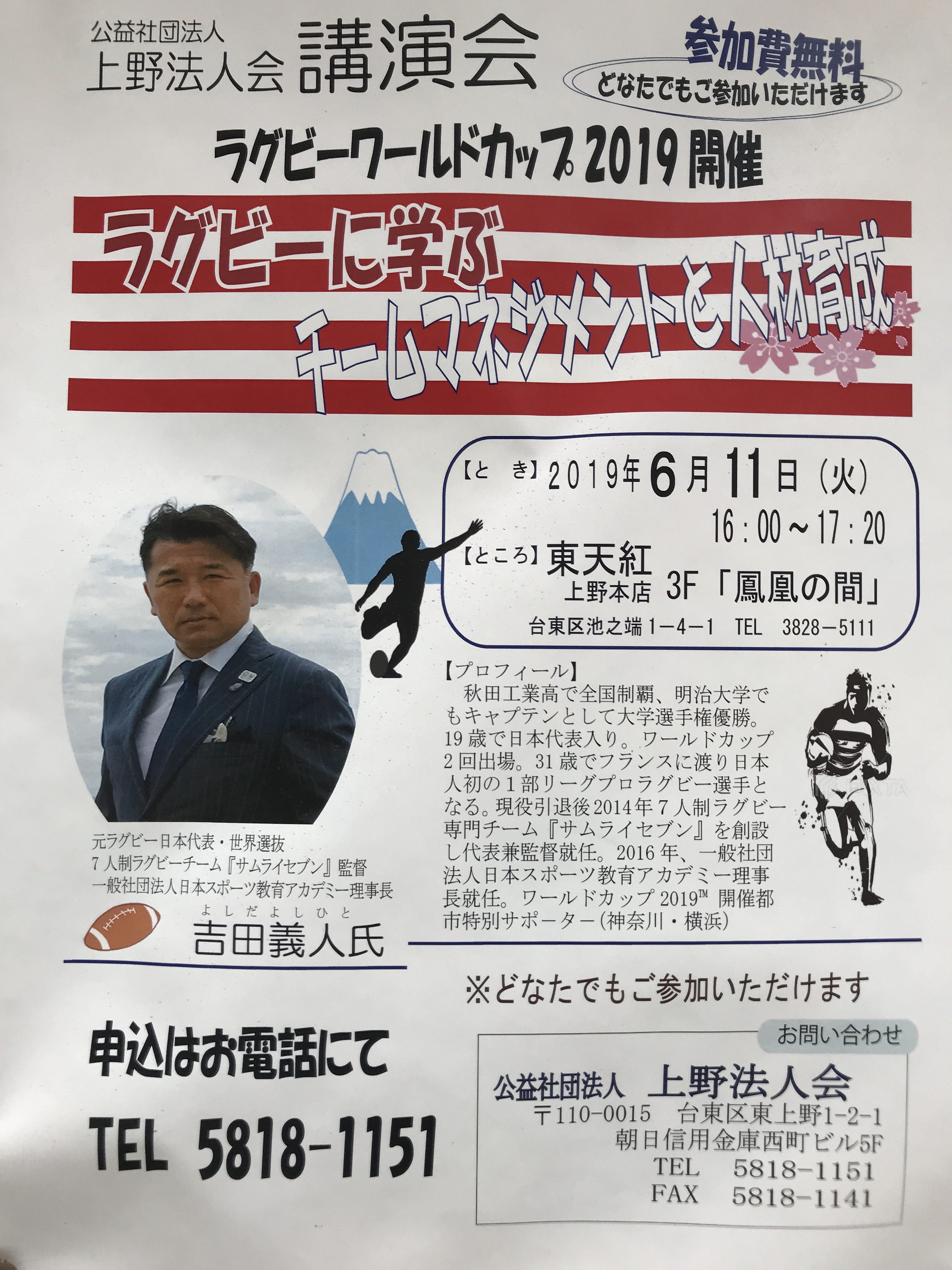 ラグビーというスポーツの面白さを改めて感じさせていただくと共に、挑戦すること、人材育成に繋がる話、盛りだくさんの内容でした。