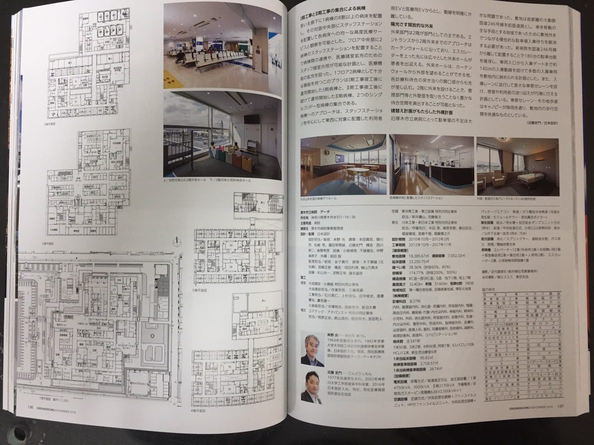 近代建築誌11月号の病院特集に取り上げられました!