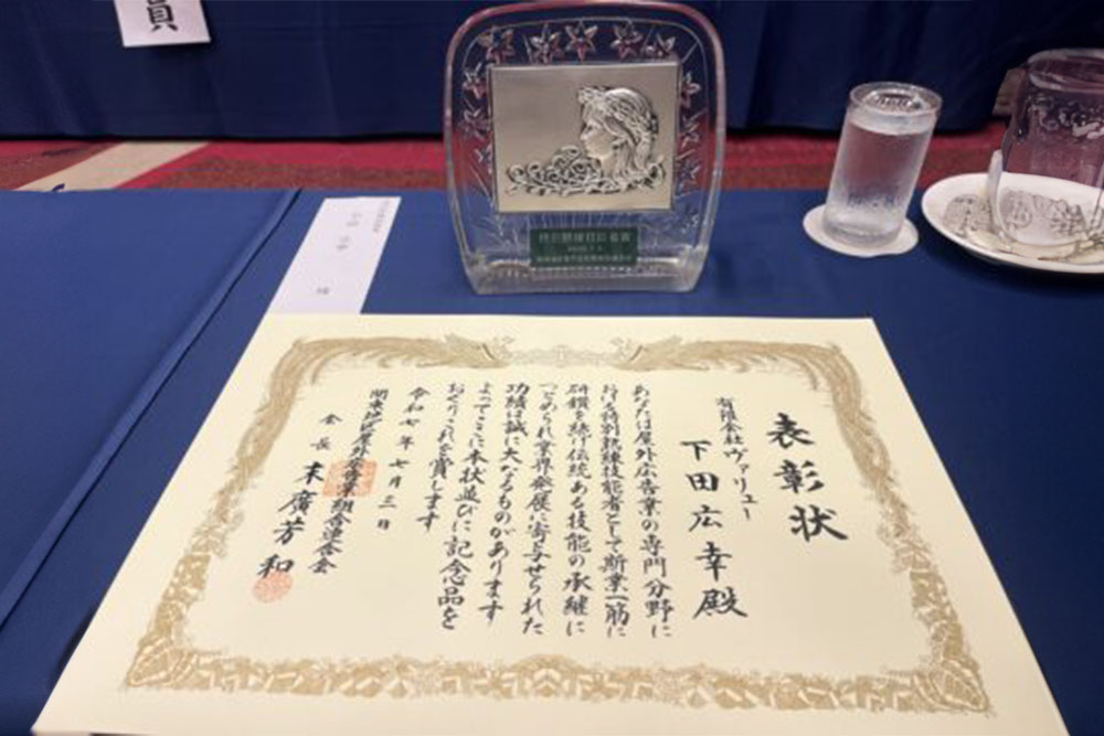 代表の下田は、関東地区屋外広告業組合連合会の定時総会にて「特別熟練技能者」として表彰をいただきました。